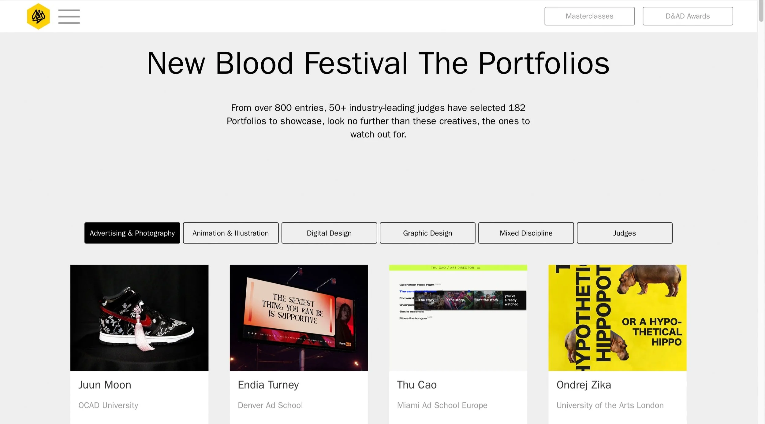 Won D&AD New Blood: The Portfolios with NJCG Nike Dunk as a title project along with my other works.